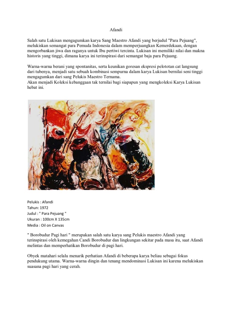 Lukisan Karya Affandi Lengkap Terkenal Beserta Keterangan Penjelasannya Pdf
