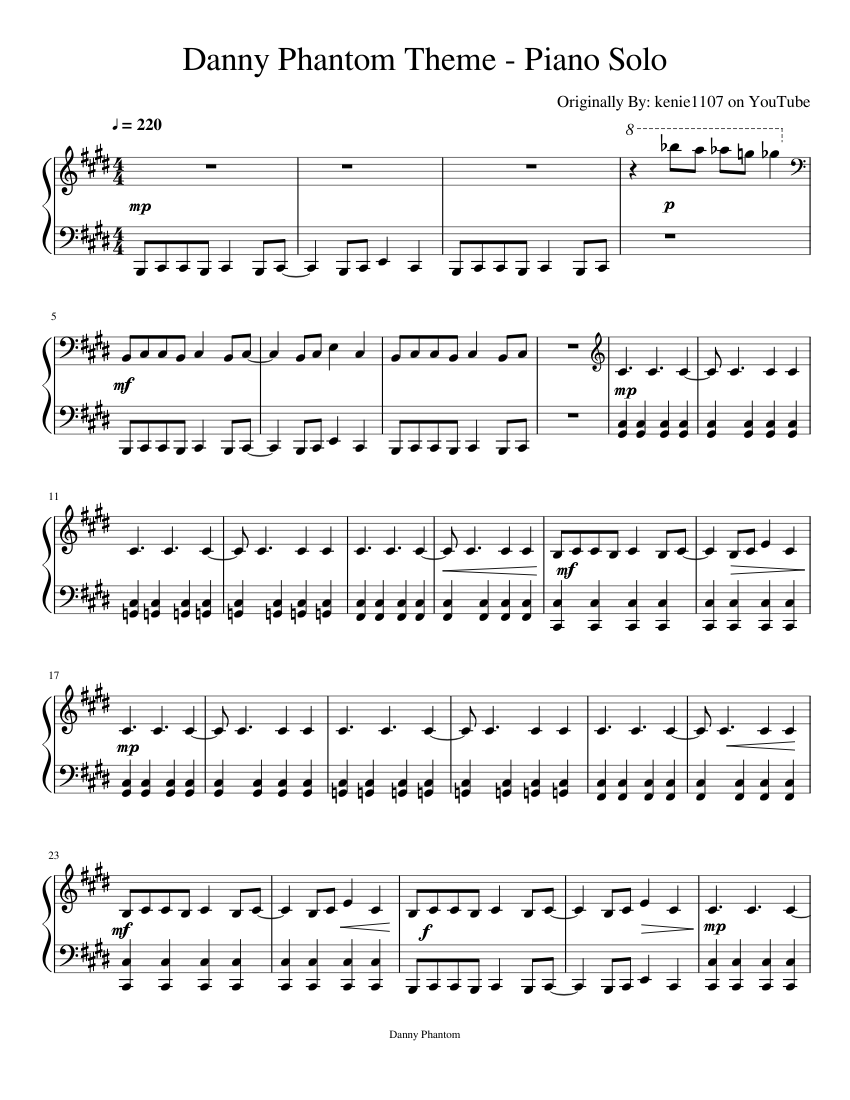 Danny Phantom Theme Piano Solo Sheet Music For Piano Solo Musescore Com