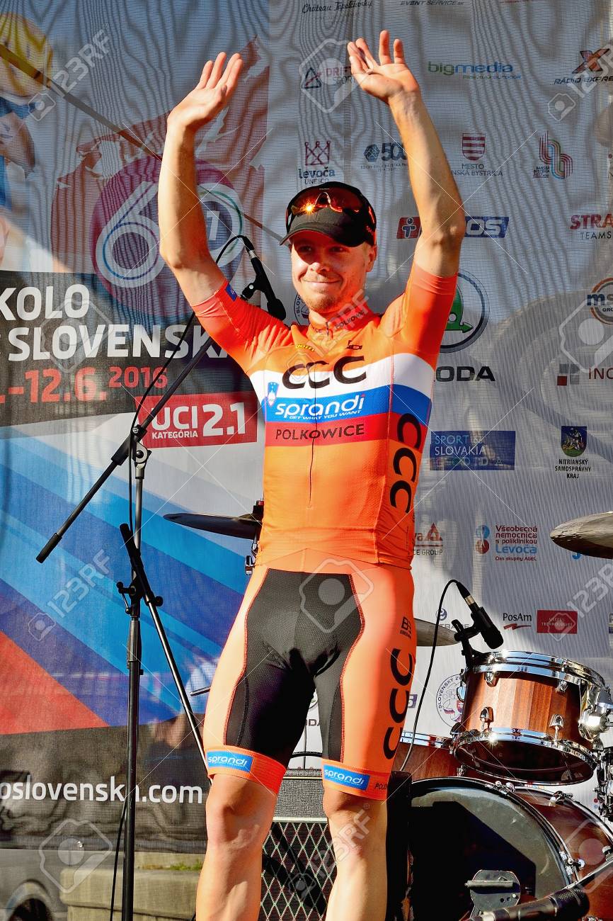 Banska Bystrica Slowakei 8 Juni 2017 Jan Tratnik Aus Slowenien Feiern Fuhrung In Der Allgemeinen Klassifizierung Und Punkte Klassifizierung Nach Der Zweiten Etappe Der Rennrad Meisterschaft Tour Der Slowakei Lizenzfreie Fotos Bilder
